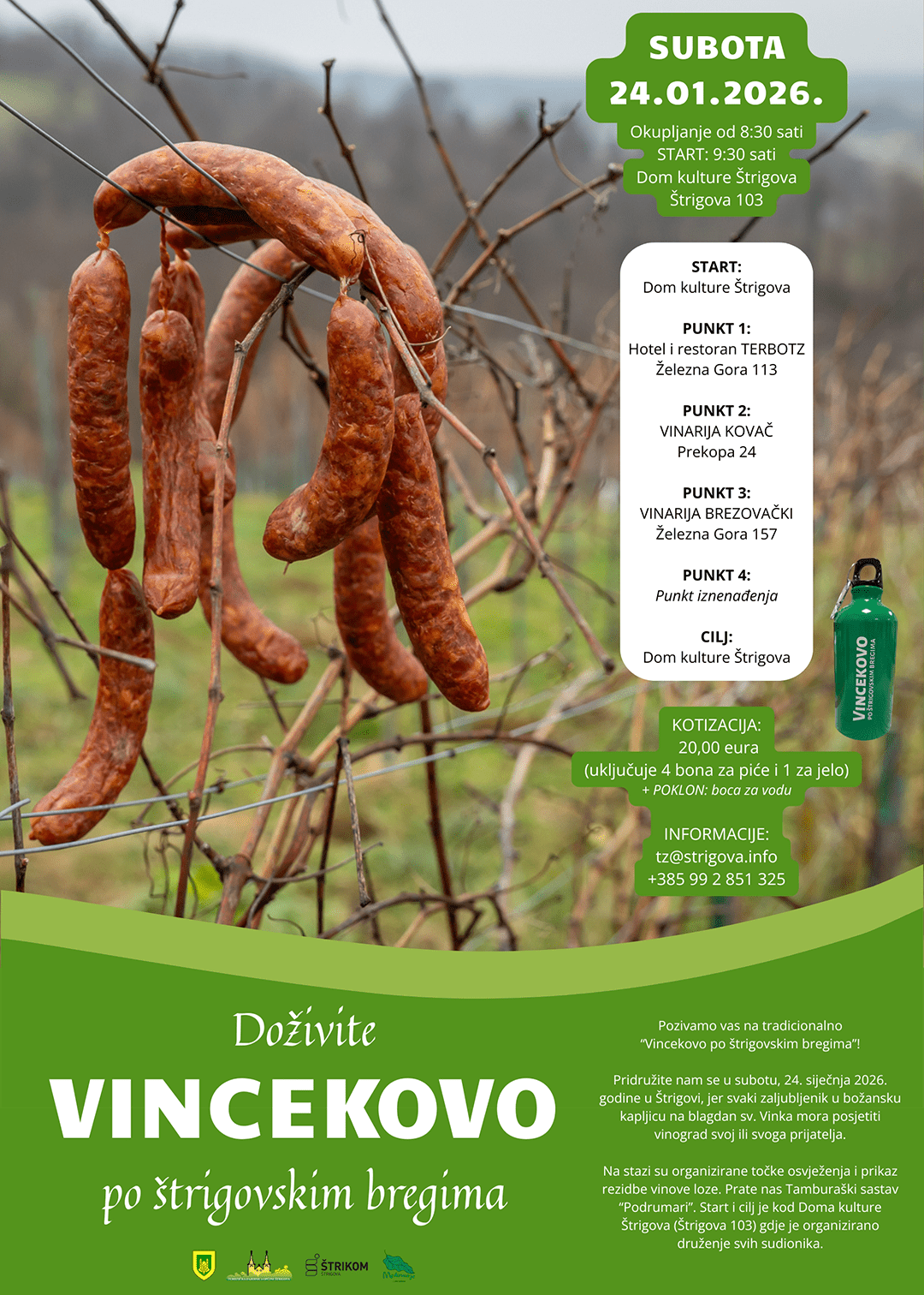 U Štrigovi će se u subotu, 24. siječnja 2026. godine, održati tradicionalno Vincekovo po štrigovskim bregima, manifestacija kojom se obilježava blagdan svetog Vinka, zaštitnika vinogradara i simboličan početak nove vinogradarske godine. Događanje se već godinama održava kao šetnja vinogradima uz tradicionalne vinske ceremonije, glazbu i uživanje u vinima međimurskih vinara.